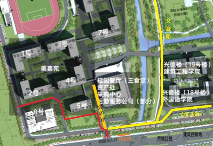2.安全交通出行:工程施工期间,梁林二期方正大道文华路南路口至文泰路段、文泰路美嘉苑二号楼西侧至方正大道路段封闭,车辆可从文源路绕行;桂园餐厅南侧停车紧张,道路狭窄,请广大师生尽量避免将车辆驶入文华路。